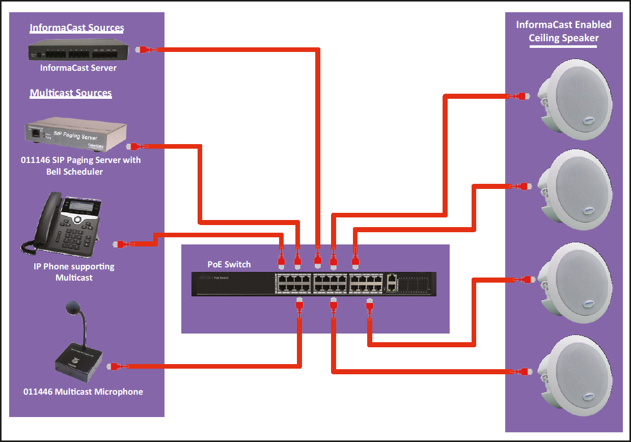 - Capable of receiving Singlewire InformaCast and multicast messages