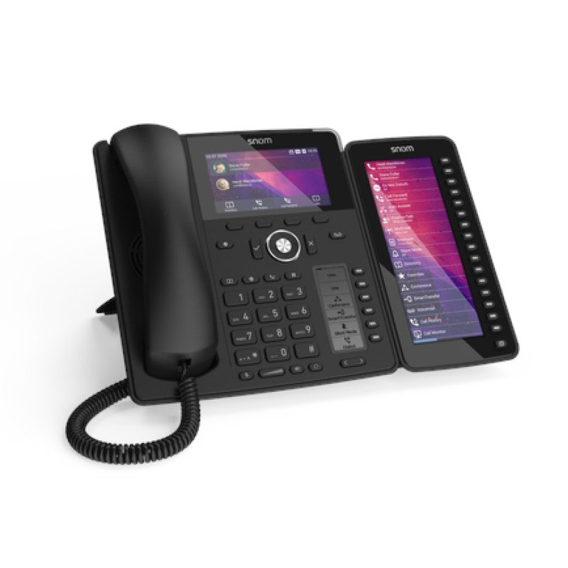 The Snom D7C is the most modern expansion module to date for the D785, D765, D735 and D717 telephones. The D7C features a high-resolution colour display with a completely redesigned user interface. Connected to a Snom phone via USB, the Snom D7C adds another large screen and many useful functions to many Snom phones. With the help of the 16 physical (48 virtual) freely programmable LED function keys, for example, the status of colleagues can be quickly recognised and the corresponding number can be dialled or a call forwarded. If the corresponding line or the LED function line lights up green, the colleague is available and can take a call.