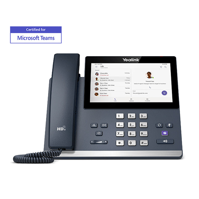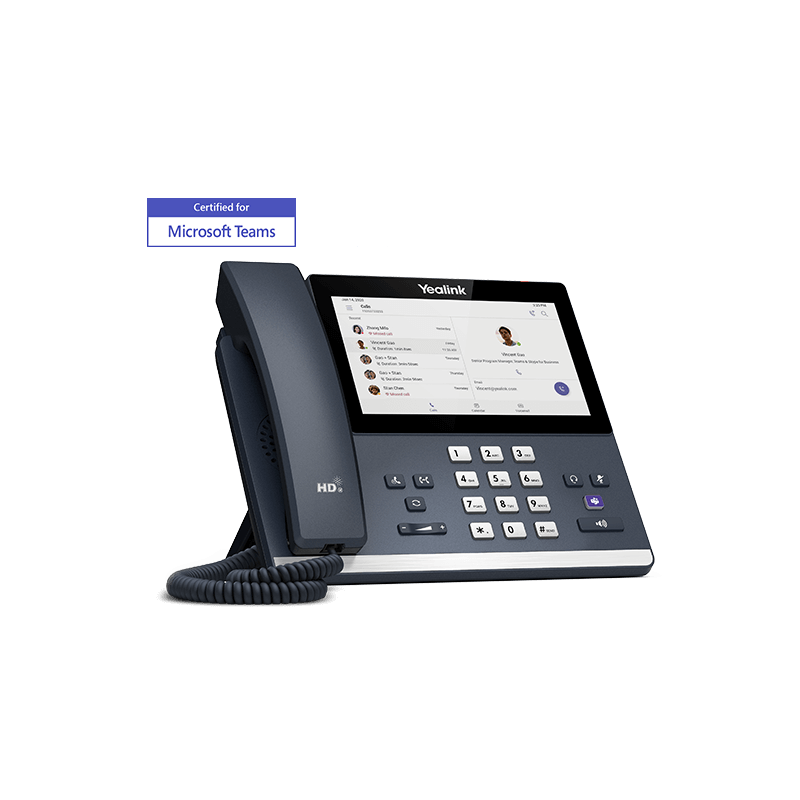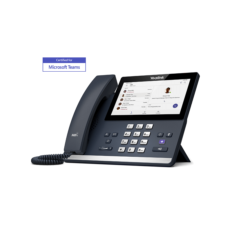 Based on Android 9 OS, MP56 is a Teams-tailored IP phone with a 7-inch capacitive touch screen, which offers a faster response speed and the upgradability of firmware to SfB edition. It facilitates high-quality collaboration with flexibility thanks to Yealink Optima HD voice and magnet handset, dedicated Teams button and Bluetooth connectivity to Bluetooth headsets. This easy-to-use and reliable option is ideal for office workers.