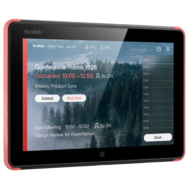 Yealink RoomPanel E2 is an 8-inch all-in-one meeting room schedule panel runs android 13 and comes with full RGB programmable LED background illumination for immediate visible communication of room status. It includes multi-touch capabilities, 802.11ac Wi-Fi, Bluetooth 5.0, built-in NFC/RFID reader, enhanced microphone arrays and speakers to meet all modern workspace demands. Also equipped with Power-over-Ethernet and a variety of mounting brackets, Yealink RoomPanel E2 could be easily mounted on any surface