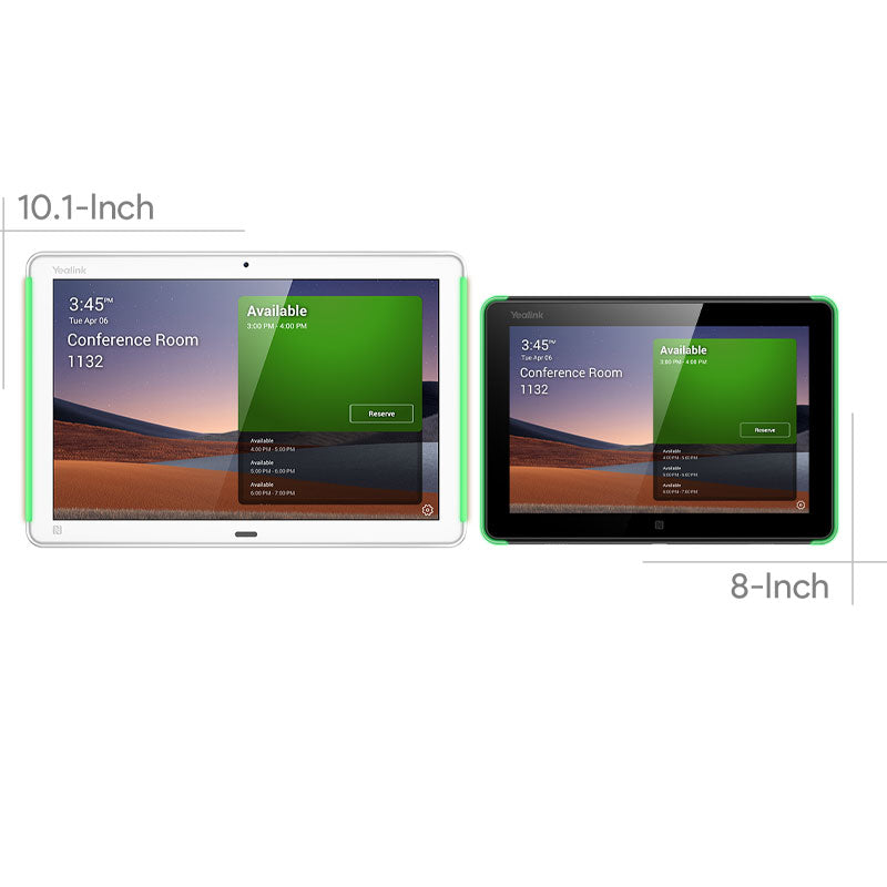 Yealink RoomPanel Plus is a 10.1-inch multifunctional meeting room schedule panel that runs Android 11 and comes with full RGB programmable LED background illumination for immediately visible communication of room status. It includes multi-point touch capability, face recognition camera, built-in NFC/RFID reader, enhanced microphone arrays and speakers to meet the diverse needs of the current office environment. Yealink RoomPanel Plus can act as a stand-alone gateway, connect to meeting room sensors and automatically update meeting room schedules, providing various meeting room management functions. Also equipped with Powerover- Ethernet and various mounting brackets, Yealink RoomPanel Plus could be easily mounted on any surface.