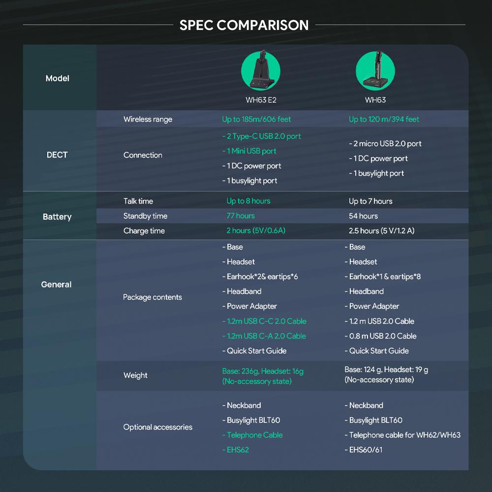 Yealink WH63 E2 UC is a convertible DECT wireless headset that supports multi-device connection and control. It offers a more flexible and efficient call experience, making it suitable for diverse office environments.