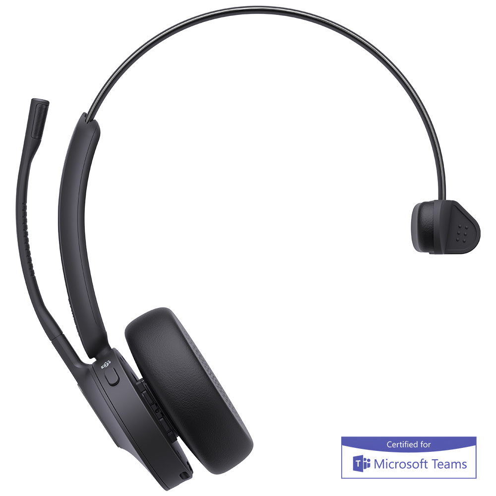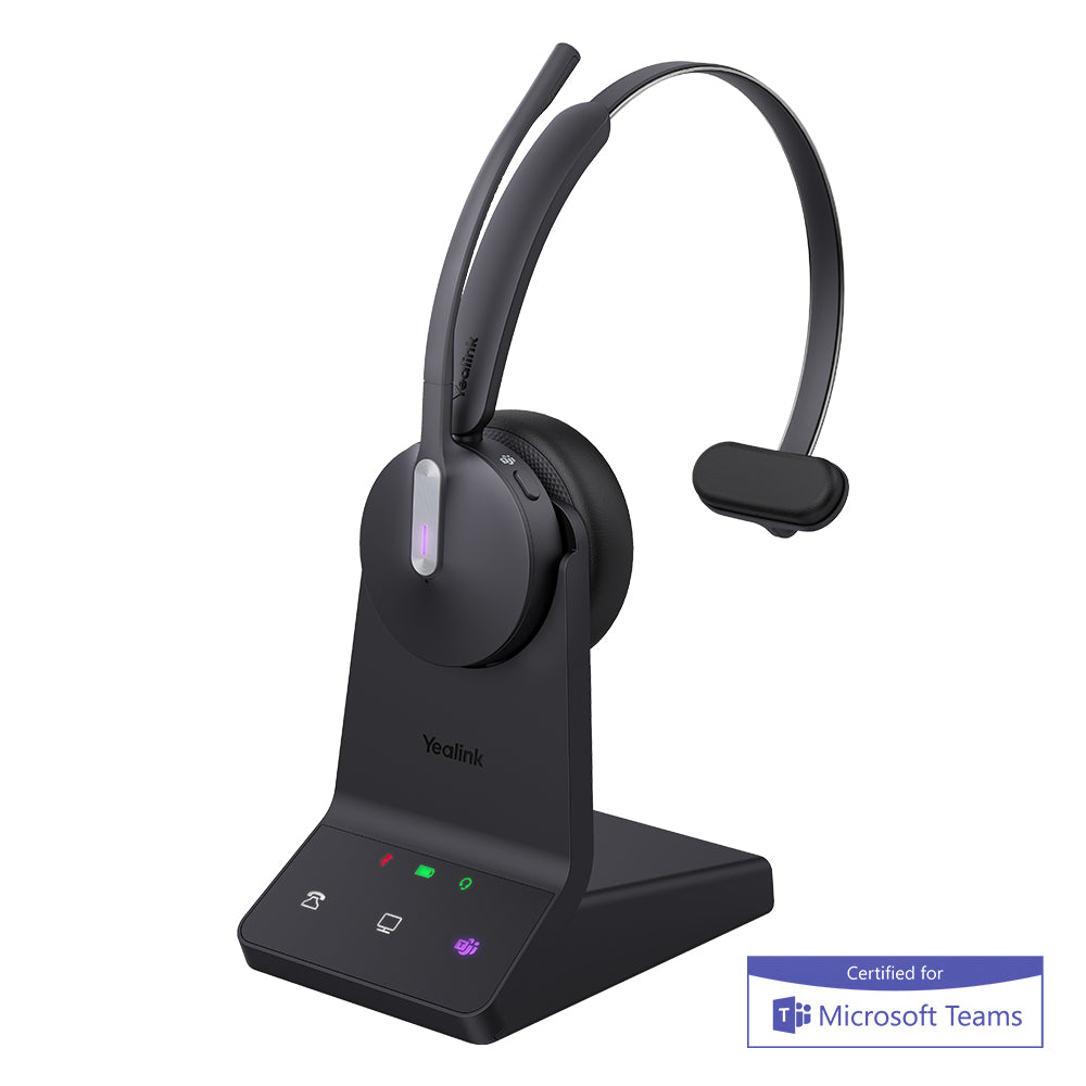 The WH64 Mono Teams is a wireless headset for business communication. It integrates DECT and Bluetooth modes, offering efficiency and flexibility. Its advanced acoustic shield technology 2.0 filter out background noise for clear sound transmission. The busylight signals your call status to avoid interruptions. Ergonomically designed for an all-day comfortable wearing experience. With high-quality materials and a lightweight build, it provides a solid experience. It connects seamlessly with IP phones and UC platforms for plug-and-play and device switching. Ideal for clear conversations and smooth office experiences.