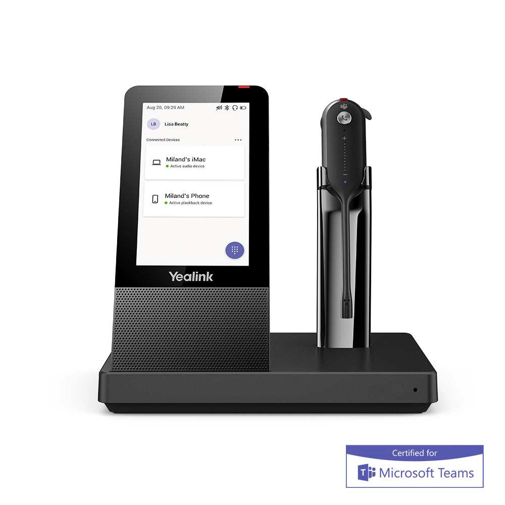 The Yealink WH67 is the industry-leading convertible DECT wireless headset, opening an entirely new form of desktop collaboration. Work seamlessly with major UC platforms and integrate natively with Yealink IP Phones. 4.0 inch (480 x 800) capacitive touch screen of the base offers a new work experience, just one touch, all control. Act as a workstation, managing phone calls, connecting to multiple devices (desk phone/mobile phone/computer), charging mobile phones wirelessly, and even playing a speakerphone’s role. Best of all, deploying such a multifunctional workstation only needs to plug in directly. Easiest things to do, greatest convenience to enjoy.